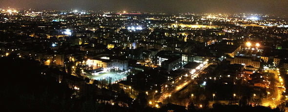 City of Bergamo at night by Andrea BertinottiCity of Bergamo by Giorces, WikipediaCity of Bergamo by Patrick GiraudCity of Bergamo by Whiteglas, WikipediaSanta Maria Maggiore University in Bergamo by MarkusMark, Wikipedia